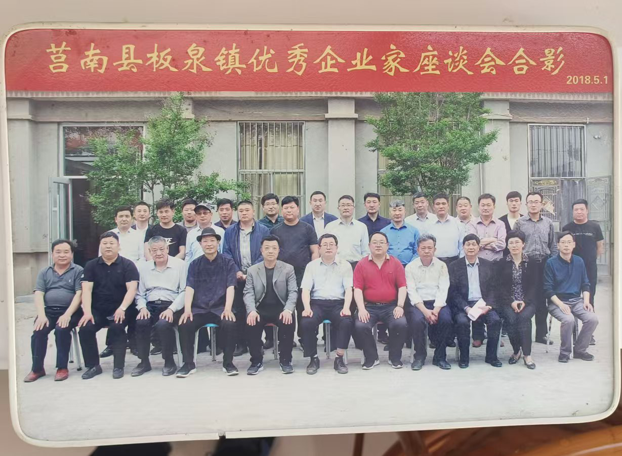 Group photo of the symposium of outstanding entrepreneurs in Banquan Town, Yingnan County